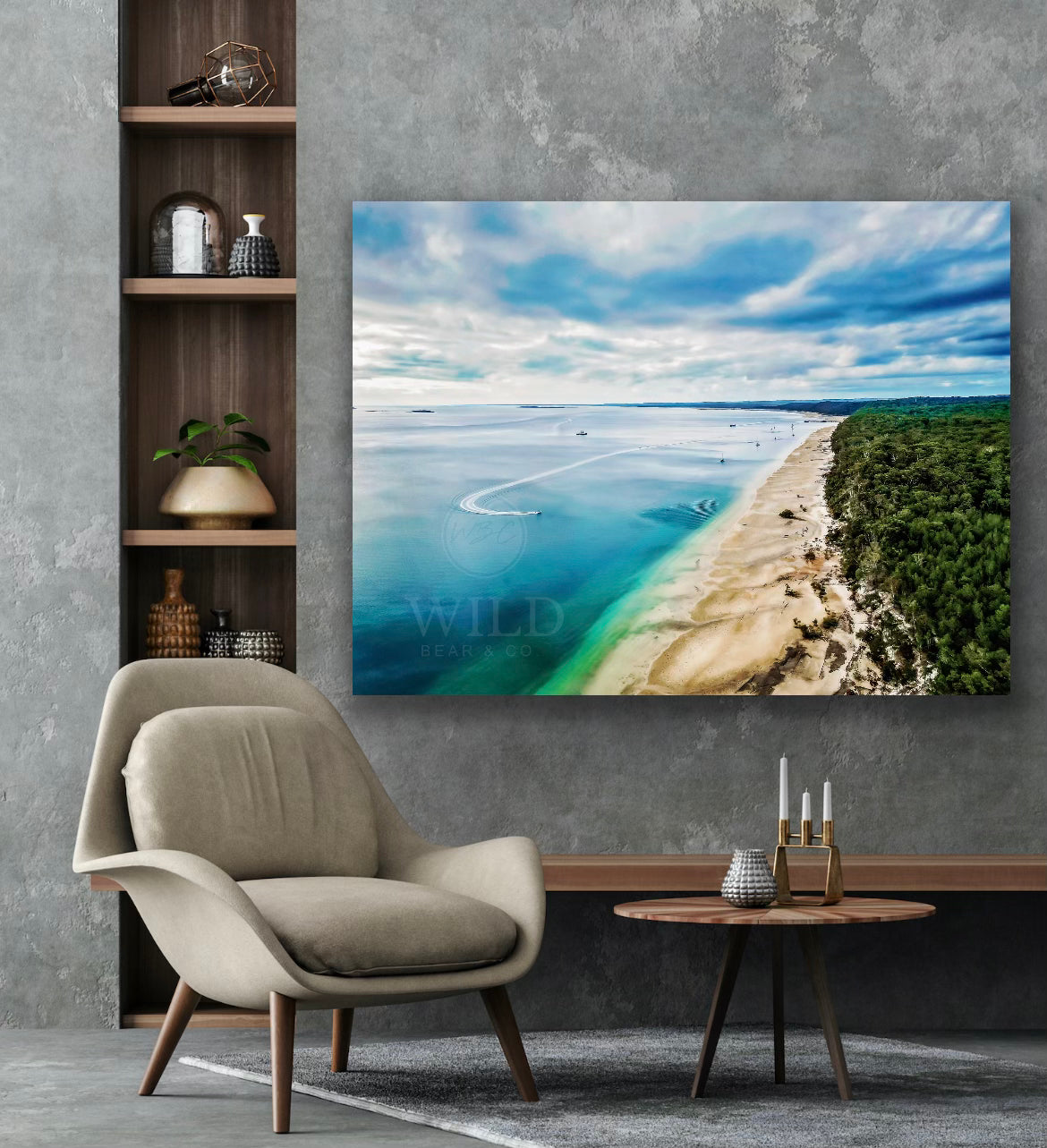 Somewhere north of Mackenzie's Jetty, captures the land that is K'gari (Fraser Island), the ocean that surrounds her, and the sky that flies above her.